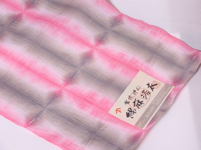 藤井絞謹製綿麻浴衣地 雪花リボン ピンクとグレー【絞り染め】【ゆかた】【夏祭り】【送料無料】【smtb-k】【ky】【おすすめ】