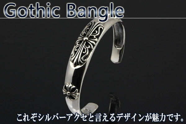 大胆にデザインされたゴシック調のクロスが存在感を放つシルバーバングルです。