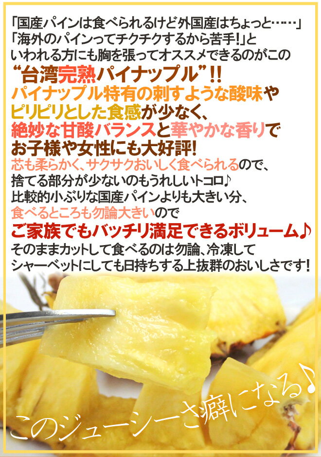 ”甘熟台湾パイン” 2〜3玉 約2.5〜3kg パイナップル/金鑚パイン/金鑚鳳梨【予約 5月下旬以降】 送料無料