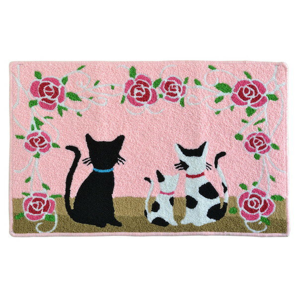 フロアマット ネコマット ローズ スクエア 長方形82×52cm( 3匹の猫 キッチンマット 玄関マット かわいい おしゃれ 薔薇 薔薇柄 バラ 花柄 猫柄 猫雑貨 猫グッズ ねこ ネコ キャット バスマット ギフト包装無料 )